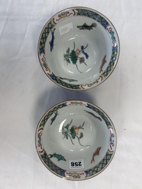 Two Chinese Kangxi porcelain famille verte bowls and stands
