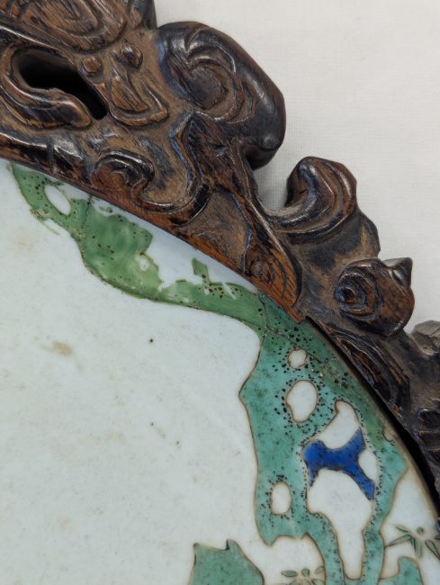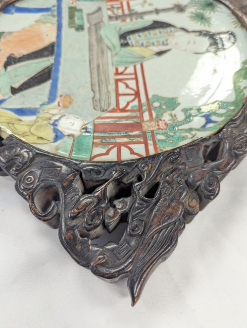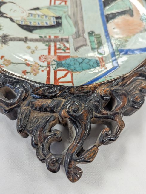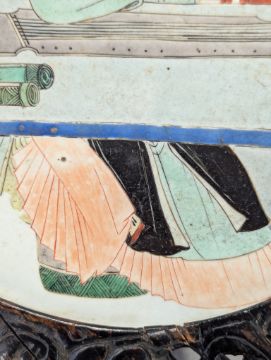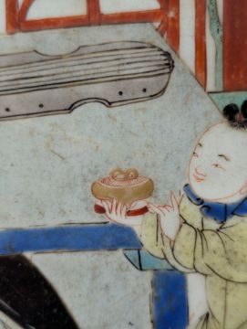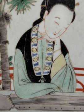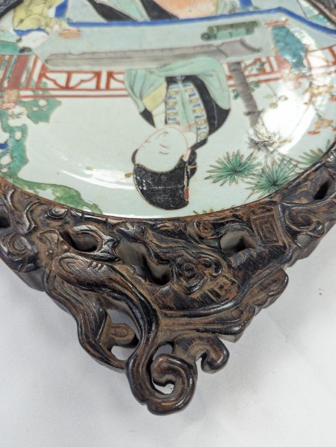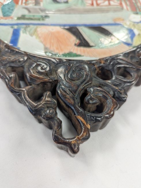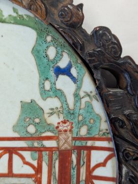 Condition: Repainting over a crack near to the top of the scholars rock. Reduced from a larger dish.