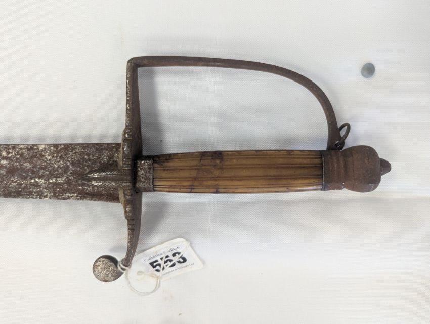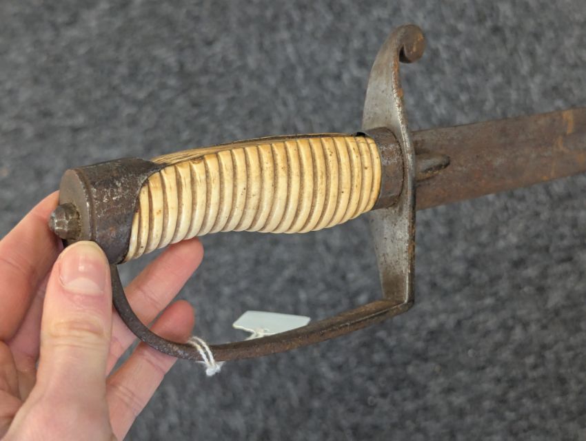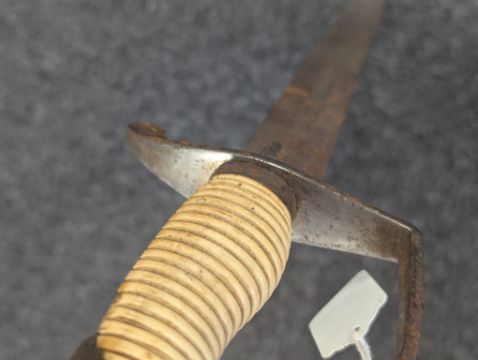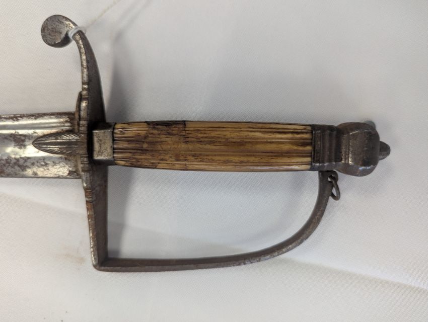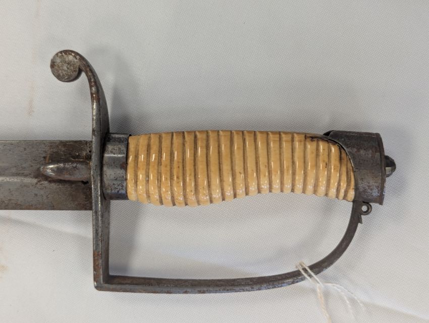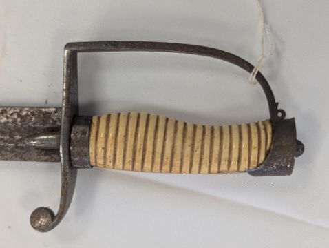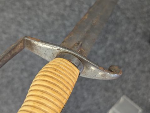 Condition: Both heavily rusted and worn. The engravings to the Naval sword are illegible.
